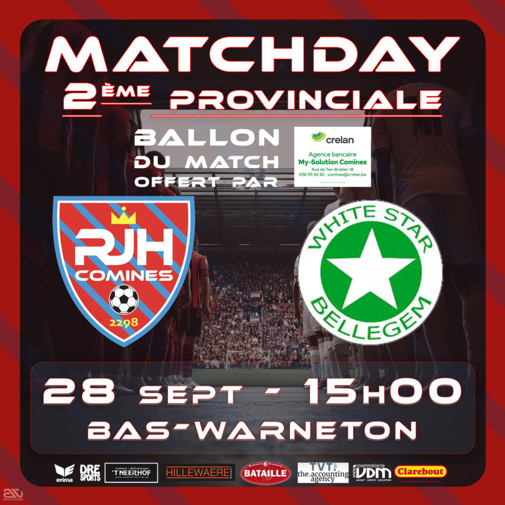 🔹 15H00 → la RJH Comines-A reçoit Bellegem à Bas-Warneton pour une nouvelle bataille provinciale 🔴🔵