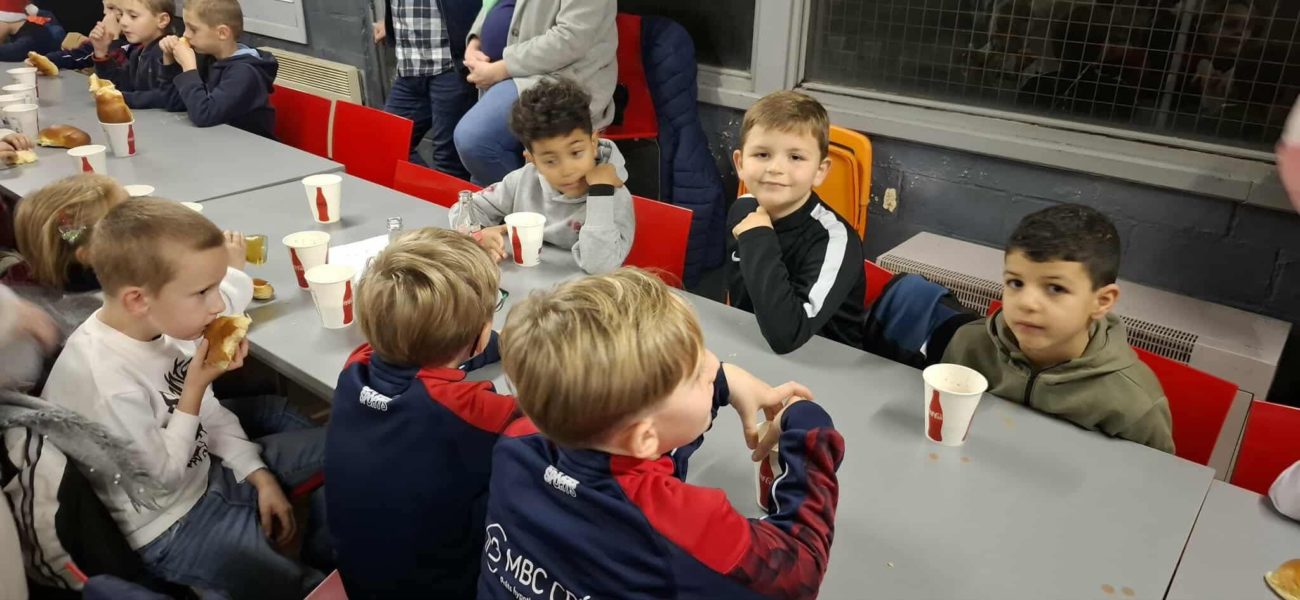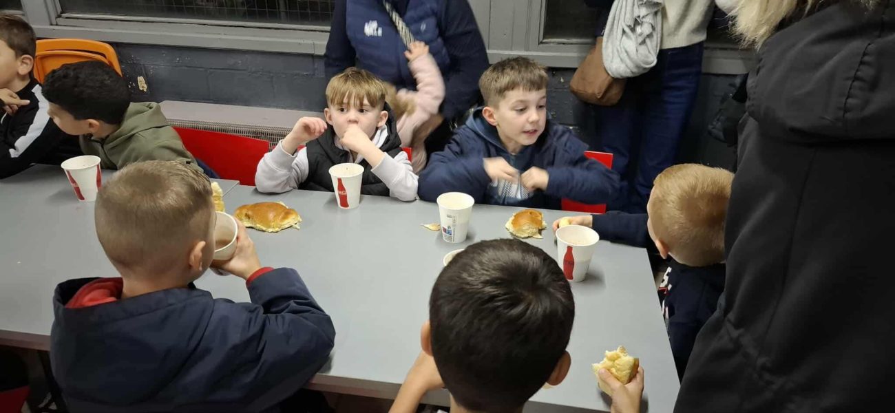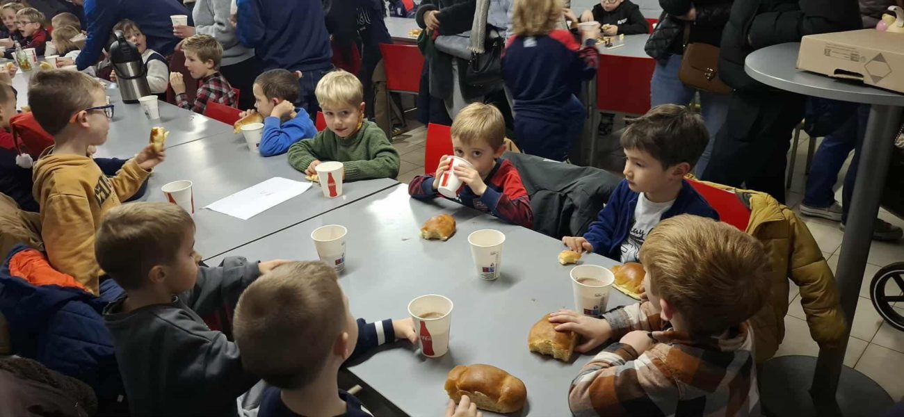 Nos jeunes du jeu à 5 ont troqué, le temps d’un goûter, les passes et les dribbles pour des sourires plein les poches… et du chocolat plein les mains.
