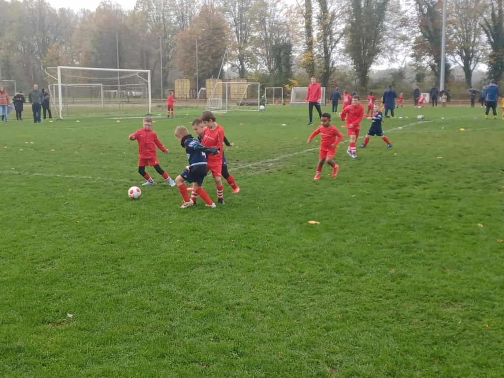 Sous une pluie battante, nos petits guerriers s’accrochent, se battent sur chaque ballon et finissent par imposer leur jeu. Les occasions s’enchaînent, mais la finition se fait parfois attendre… jusqu’à ce que Soso, bien servi par Gaspard, ouvre le score et libère toute l’équipe !