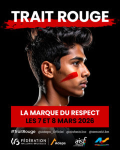 Tracez un trait rouge sur votre visage, partagez vos photos avec le hashtag #TraitRouge et montrez votre engagement !