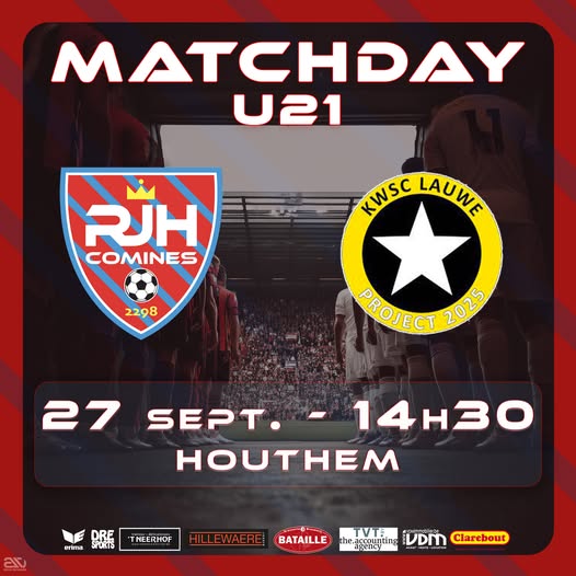 Les U21, du jus en bouteille ? Faites-nous le plein !!! 27 septembre 2025Groupe Séniors , News Nos jeunes rouges n’ont peut-être pas encore beaucoup de bouteille… mais ils ont déjà du jus à revendre ! Ce samedi 27 septembre à 14h30, les U21 de la RJH Comines accueillent le WS Lauwe sur le terrain d’Houthem. Venez encourager l’avenir du club, ils comptent sur vous !