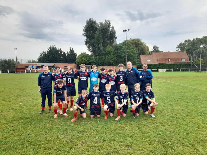 On joue la dernière minute quand Hugo se fait faucher dans le rectangle, penalty ! Il se fait vengeance en le plaçant à ras de sol pour tromper le gardien. Score final 4-1 et une fierté quand on sait que Menin s’est déplacé avec quatre U17 pour nous affronter. Grace à cette nouvelle victoire nous nous retrouvons à la seconde place du classement, devancés par Wervik à la différence de buts.