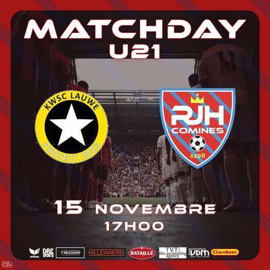 🔥 Ce samedi 15/11 à 17h, nos jeunes Cominois prennent la direction de Lauwe (Hospitaalstraat 16 – Terr. 3) pour y défier le KWS Lauwe. On est dans le bon wagon, et une victoire là-bas ferait du bien.