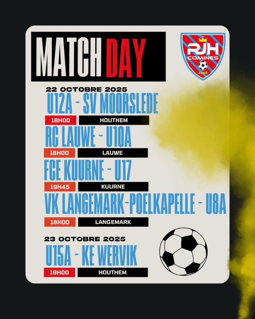 – Les U12A reçoivent SV Moorslede à Houthem (18h) : objectif, faire oublier les bulletins avec des buts