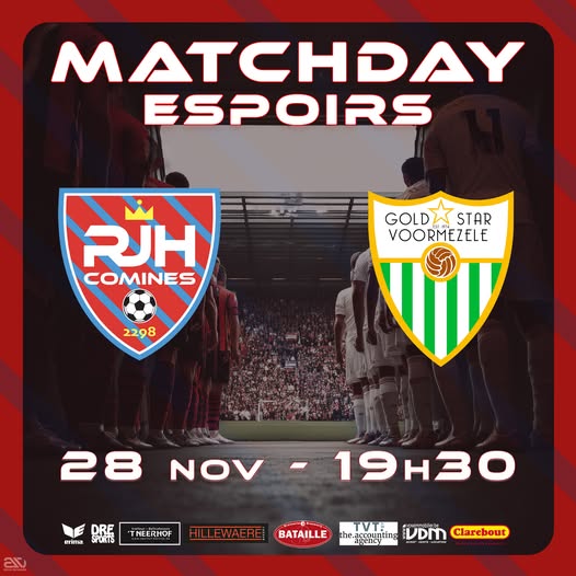 Ce vendredi soir, direction Houthem pour soutenir nos Espoirs ! Ils reçoivent le Gold Star Voormezele.