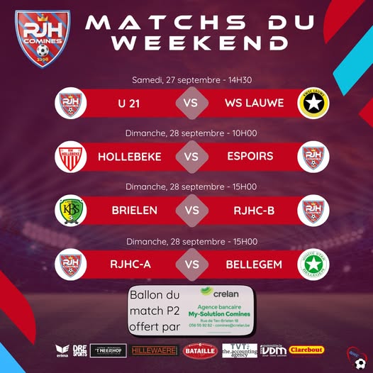 Un weekend palpitant attend la RJH Comines, avec des défis relevés face à des adversaires ambitieux et/ou en quête de confiance. Entre ambition et prudence, les Cominois auront besoin du soutien de leurs supporters pour transformer ces rendez-vous en succès. 🔴🔵