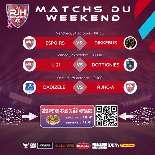 Des matchs à enjeu, une belle ambiance attendue et un weekend idéal pour vibrer aux couleurs rouges et bleues de la RJH Comines